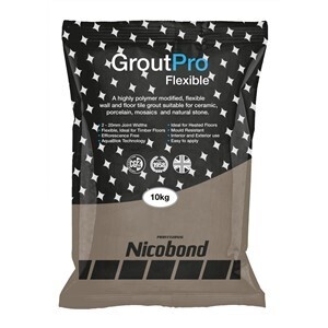 A superior, single part, fast setting, highly polymer modified, cement based grout. Nicobond Grout Pro Flexible is free from efflorescence has excellent anti mould properties. Incorporating AquaBlok Technology, Nicobond Grout Pro Flexible is both water resistant and water repellent. Suitable for use with ceramic, porcelain, glass and natural stone tiles. Designed for situations where slight background movement or vibration is likely. Nicobond Grout Pro Flexible is available in a range of contemporary colours designed to co-ordinate with our silicone sealants.